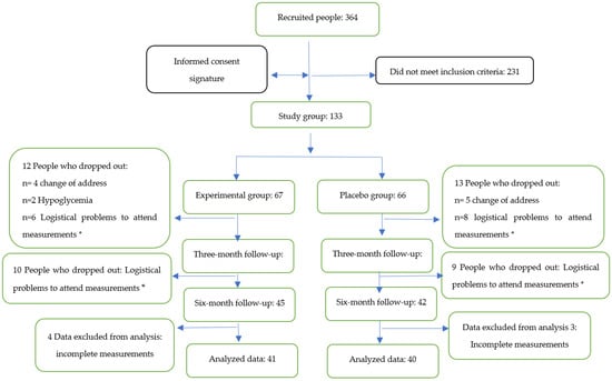| Parameter | Placebo Group n = 40  | Experimental Group n = 41  | p-Value |