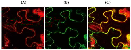 The pER8-mCherry for transgene localization analysis and pBIN61-GFP-HA (P35s:GFP-HA) plasmid for the cytoplasmic fluorescence marker were kindly provided by Dr. HG Kang (Texas state university, San Marcos, TX, USA). As for the subcellular localization study of AtM3H, a full-length AtM3H cDNA was amplified with PCR using a primer set containing an AscI site (forward, 5′-GGC GCG CCA TGG AAG CAA AAG GGG CAGC-3′, reverse, 5′-GGC GCG CCG GAT TCT CAA AGC ATC TAG-3′). The amplified PCR product was first introduced into the T&A vector (RBC Bioscience, New Taipei City, Taiwan), from which the AscI insert of AtM3H was prepared and ligated into the AscI site of the binary vector pER8-mCherry to generate pER8-AtM3H-mCherry. The resulting plasmids were transformed into the Agrobacterium Tumefaciens strain GV2260 using the freeze-thaw method. Leaves from four-week-old tobacco (Nicotiana benthamiana) plants, native Australian species, were infiltrated with Agrobacterium strain (about 0.2 OD), followed by infiltration with 10 μM β-estradiol, and then incubated for 24 h in a growth room. Images were obtained using a Leica TCS-SP5 confocal microscope (Leica, Wetzlar, Germany) using a ×63 oil-immersion objective. Images were processed using the Leica LAS-AF software version 1.8.2 (Leica, Wetzlar, Germany).