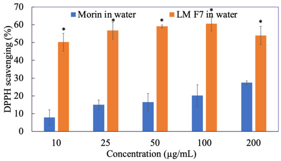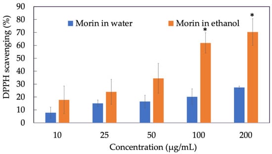 In this study, we first screened the antioxidant property of free morin dissolved in DMSO by in vitro DPPH