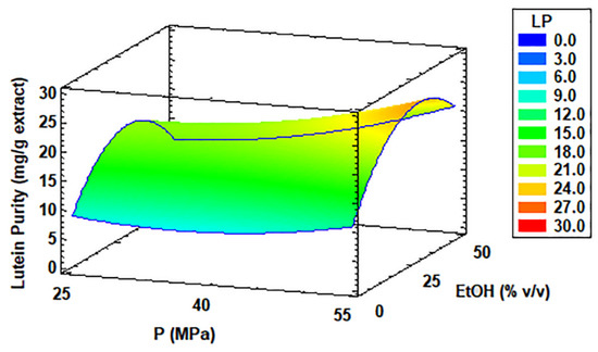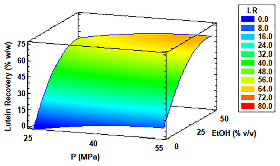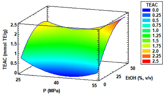 | Run | T (°C) | P (MPa) | EtOH (%, v/v) | Y (%, w/w) | LP (mg/g Extract) | LR (%, w/w) | TPC (mg GAE/g Extract) | TEAC (mmol TE/g Extract) |