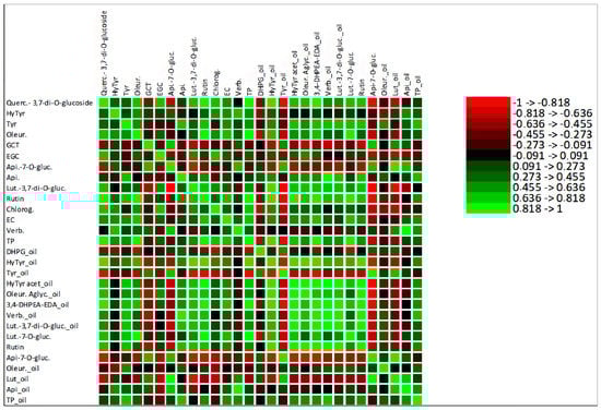 | DHPG | HyTyr | Tyr | HyTyr Acet. | Oleur. Aglyc. | 3,4-DHPEA-EDA | Verb. | Oleur. | Lut.7-O-gluc. | Lut.-3,7-di-O-gluc. | Rutin | Api-7-O-gluc. | Lut. | Api. | ||