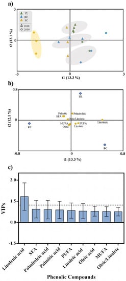 3.3. Olive Fruit and Oil Metabolite Concentration under the Influence of Soil Conditioners