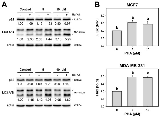 3.2. PHA Induces Autophagy and Autophagic Flux