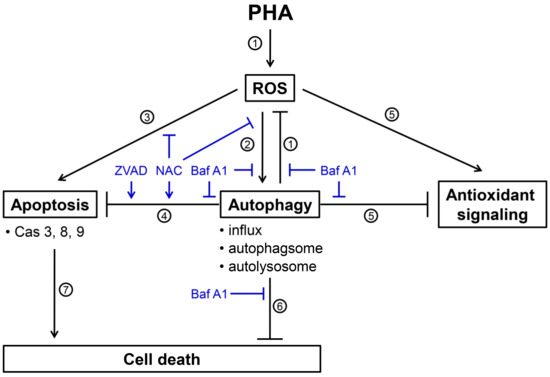 3.7. Autophagy Downregulation Promotes PHA-Triggered Apoptosis Signaling