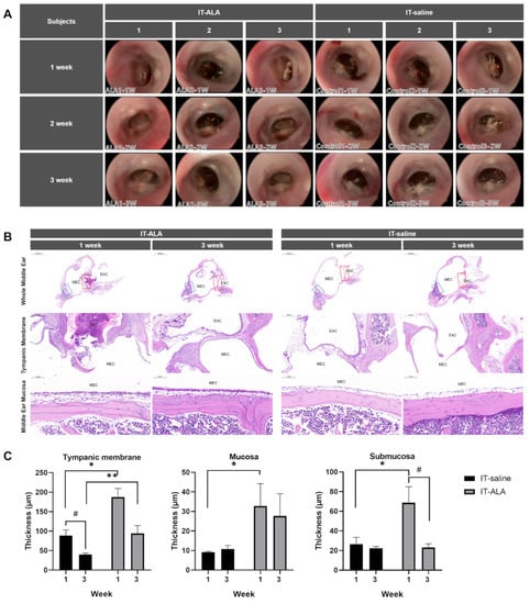 3.1. Assessment of the Middle Ear Safety after IT-ALA Administration