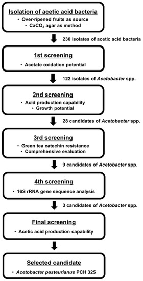 - Sharafi, S.M.; Rasooli, I.; Beheshti-Maal, K. Isolation, characterization and optimization of indigenous acetic acid bacteria and evaluation of their preservation methods. Iran. J. Microbiol. 2010, 2, 38. [Google Scholar] [PubMed]
