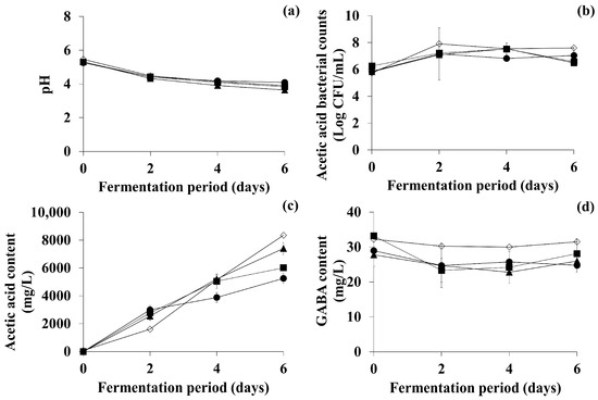 - Kim, J.-N.; Choo, J.-S.; Wee, Y.-J.; Yun, J.-S.; Ryu, H.-W. Culture medium optimization for acetic acid production by a persimmon vinegar-derived bacterium. Appl. Biochem. Biotechnol. 2005, 123, 861–869. [Google Scholar] [CrossRef]