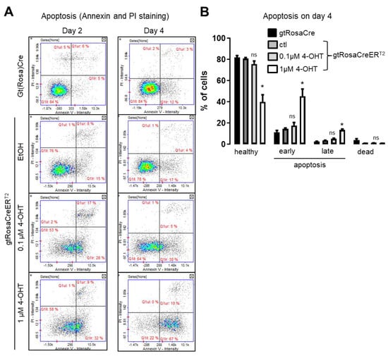 3.3. Acute Activation of Cre-Recombinase Causes DNA Damage and Induces Apoptosis
