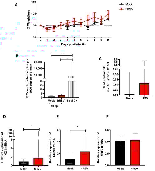 - Espinoza, J.A.; León, M.A.; Céspedes-Donoso, P.F.; Gómez, R.S.; Canedo-Marroquín, G.; Riquelme, S.A.; Salazar-Echegarai, F.J.; Blancou, P.; Simon, T.; Anegon, I.; et al. Heme Oxygenase-1 Modulates Human Respiratory Syncytial Virus Replication and Lung Pathogenesis during Infection. J. Immunol. 2017, 199, 212–223. [Google Scholar] [CrossRef] [PubMed]