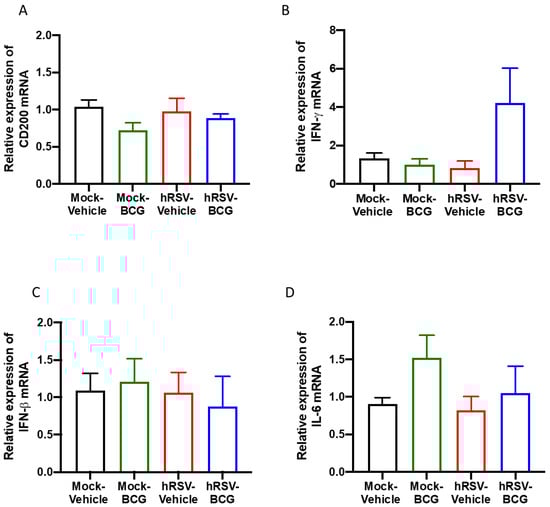 | Day of the First Inoculation (Mock or Human Respiratory Syncytial Virus) | Day of the Second Inoculation (Vehicle or Bacillus Calmette-Guerin) | Day of the Euthanasia (After the Second Inoculation) | |