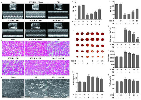 3.1. ICS II Mitigated MI-Induced Myocardial Injury in Mice