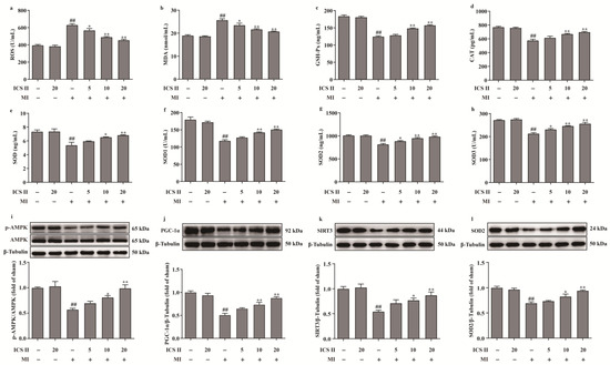 3.3. ICS II Alleviated Oxidative Stress and Activated AMPK/PGC-1α/SIRT3 Signaling Pathway after MI in Mice