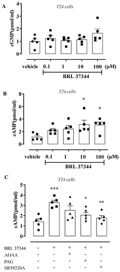 3.4. BRL 37344 Increases cAMP Levels in T24 Cells