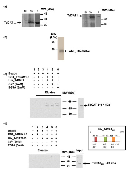3.4. TdCAT1 Interacts In Vitro with TdCaM1.3