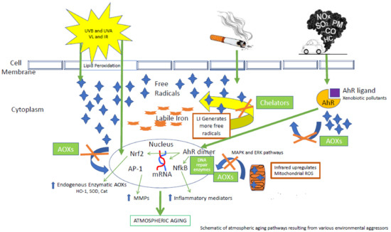 - McDaniel, D.; Farris, P.; Valacchi, G. Atmospheric skin aging-Contributors and inhibitors. J. Cosmet. Dermatol. 2018, 17, 124–137. [Google Scholar] [CrossRef] [PubMed]