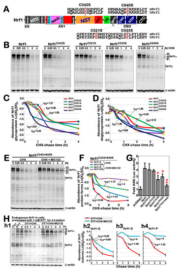 3.5. The Redox Status of Cys342 and Cys640 in Nrf1 Is Required for Their Protein Stability and Trans-Activity