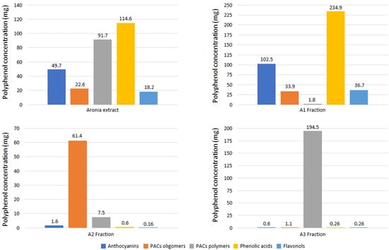 3.1. Characterization of Polyphenols in Aronia Extract and Three Polyphenolic-Enriched Fractions