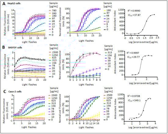 3.2.1. Comparison of Intracellular Antioxidant Activity (Free Radical Scavenging Activity) of the Whole Aronia Extract versus Its Phenolic Fractions Assessed with AOP1 Bioassay