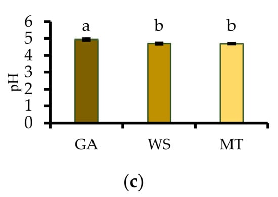 | GA | 6.41 ± 0.35 a | 14.65 ± 1.35 b | 59.87 ± 0.85 a | 14.30 ± 0.17 c | 19.10 ± 0.12 c | 53.18 ± 0.33 a | 23.86 ± 0.10 c | 21.03 ± 1.62 ab |