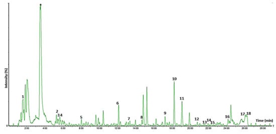 | 1,3 di-Caffeoylquinic acid A | 29.40 ± 2.09 a | 26.96 ± 1.32 b | 26.44 ± 0.18 b |
