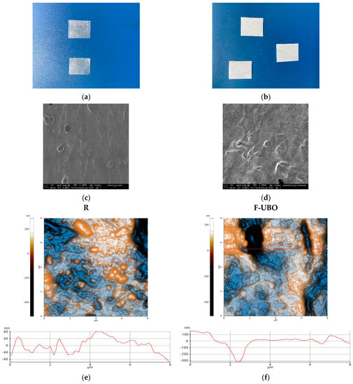 Five films of each formulation (F-UBO and R) were moistened with 1 mL of distilled water (pH 6.5 ± 0.5) for 5 min at room temperature. Then, the pH value was measured with the CONSORT P601 pH-meter (Consort bvba, Turnhout, Belgium).