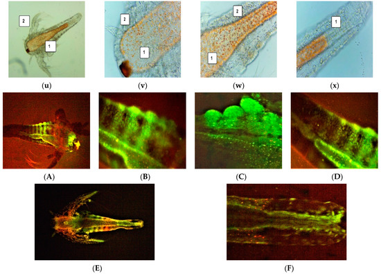 The brine shrimp larvae were stained with 3% acridine orange (Merck Millipore, Burlington, MA, USA) for 5 min. The samples were subjected to drying for 15 min in darkness and placed on the microscope slides.