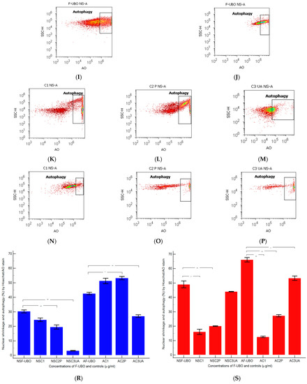 - Thomé, M.P.; Filippi-Chiela, E.C.; Villodre, E.S.; Migliavaca, C.B.; Onzi, G.R.; Felipe, K.B.; Lenz, G. Ratiometric analysis of Acridine Orange staining in the study of acidic organelles and autophagy. J. Cell Sci. 2016, 129, 4622–4632. [Google Scholar] [CrossRef]