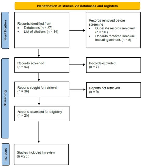 - Page, M.J.; Mckenzie, J.E.; Bossuyt, P.M.; Boutron, I.; Hoffmann, T.C.; Mulrow, C.D.; Shamseer, L.; Tetzlaf, J.L.; Akl, E.A.; Brennan, S.E.; et al. The PRISMA 2020 statement: An updated guideline for reporting systematic reviews. Syst. Rev. 2021, 10, 89. [Google Scholar] [CrossRef]