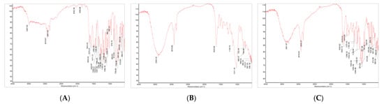 In the FT-IR spectra of hesperetin (Figure 3), hesperidin and hesperidin glucoside, the characteristic absorption bands were present, and then identified, respectively, using OMNIC software library (Thermo Fisher Scientific, Waltham, MA, USA).