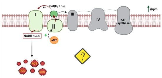 Our research group found that treatment with melatonin inhibits metabolic reprogramming by inhibiting glycolysis and increasing OXPHOS activity, leading to the production of ROS in head and neck squamous cell carcinoma (HNSCC) []. Thus, enhanced OXPHOS activity increases the levels of ROS, thereby inducing cancer cell death []. In primary human kidney mesangial cells, melatonin can also induce rapid ROS generation via the antimycin-A-sensitive site in mitochondrial complex III [].