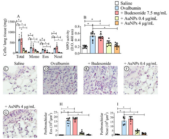 3.2. Effect of AuNPs but Not Budesonide on Inflammatory Changes Caused by Allergen Provocation