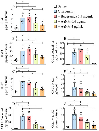 3.4. Effect of AuNPs but Not Budesonide on Cytokine and Chemokine Generation Caused by Allergen Provocation