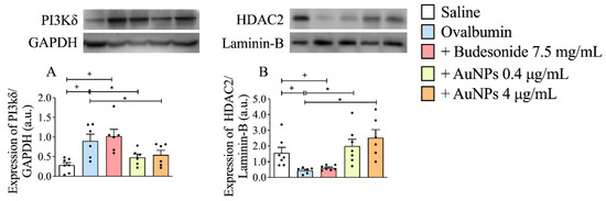 3.6. Effect of AuNPs on the Activated PI3Kδ/HDAC2 Pathway following Long-Term Allergen Exposure in A/J Mice