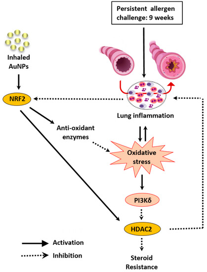 Chicago/Turabian StyleSerra, Magda F., Amanda C. Cotias, Andreza S. Pimentel, Ana Carolina S. de Arantes, Ana Lucia A. Pires, Manuella Lanzetti, Jandir M. Hickmann, Emiliano Barreto, Vinicius F. Carvalho, Patrícia M. R. e Silva, and et al. 2022. "Gold Nanoparticles Inhibit Steroid-Insensitive Asthma in Mice Preserving Histone Deacetylase 2 and NRF2 Pathways" Antioxidants 11, no. 9: 1659. https://doi.org/10.3390/antiox11091659