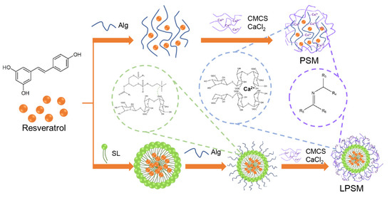 Preparation of polysaccharide self-assembled microspheres (PSM) and lecithin-polysaccharide self-assembled microspheres (LPSM). Alg, alginate; SL, soybean lecithin; CMCS, carboxymethyl chitosan.