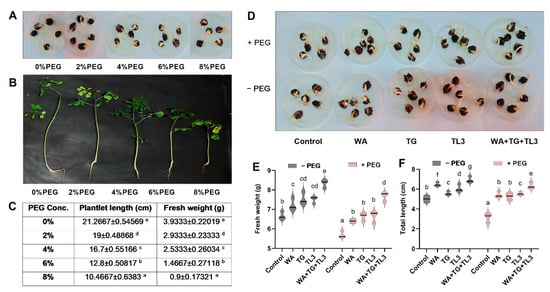 62. Mahpara, S.; Zainab, A.; Ullah, R.; Kausar, S.; Bilal, M.; Latif, M.I.; Arif, M.; Akhtar, I.; Al-Hashimi, A.; Elshikh, M.S.; et al. The impact of PEG-induced drought stress on seed germination and seedling growth of different bread wheat (Triticum aestivum L.) genotypes. PLoS ONE 2022, 17, e0262937. [Google Scholar] [CrossRef]