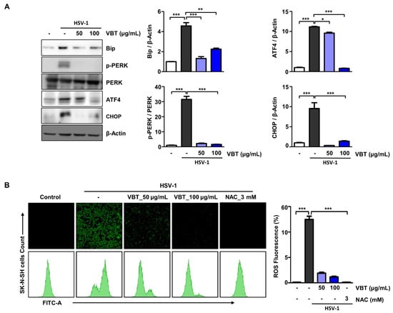 3.5. VBT Inhibited ER Stress Induction by HSV-1 in SK-N-SH Cells