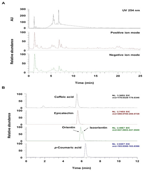2.12. Ultra-High Performance Liquid Chromatography Coupled with High-Resolution Orbitrap Mass Spectrometry
