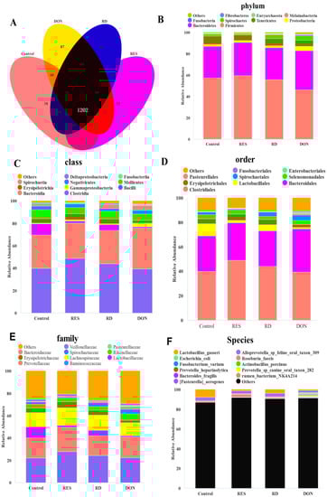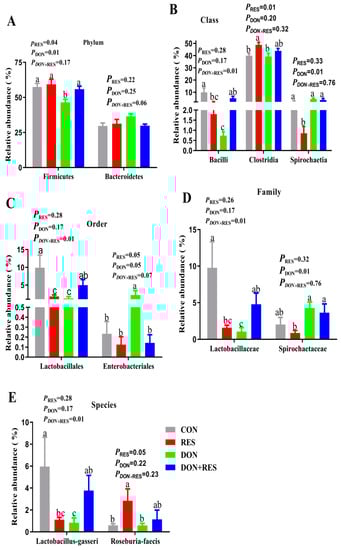 3.5. Effects of Resveratrol Supplementation on the Composition of the Colonic Microbiota of Piglets Challenged with Deoxynivalenol