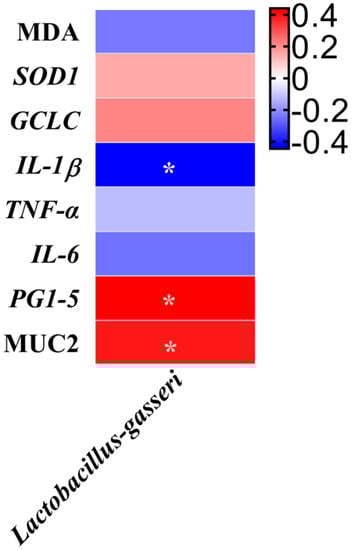 3.7. Correlation Analysis of the Gut Microbiota and Variables Related to Intestinal Barrier Function, Inflammation and Oxidative Damage