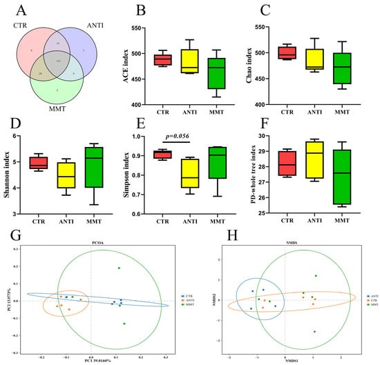 3.2.1. Microbiota Diversity in Intestinal Contents