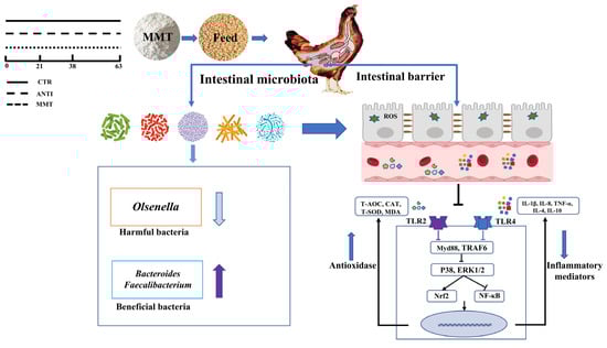 Wang, Q.; Zhan, X.; Wang, B.; Wang, F.; Zhou, Y.; Xu, S.; Li, X.; Tang, L.; Jin, Q.; Li, W.; et al. Modified Montmorillonite Improved Growth Performance of Broilers by Modulating Intestinal Microbiota and Enhancing Intestinal Barriers, Anti-Inflammatory Response, and Antioxidative Capacity. Antioxidants 2022, 11, 1799. https://doi.org/10.3390/antiox11091799