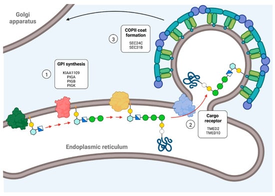 - Bonnon, C.; Wendeler, M.W.; Paccaud, J.-P.; Hauri, H.-P. Selective export of human GPI-anchored proteins from the endoplasmic reticulum. J. Cell Sci. 2010, 123, 1705–1715. [Google Scholar] [CrossRef] [PubMed]