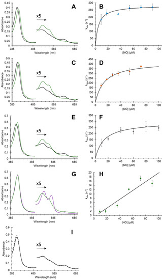 3.1. Effect of Mutations on Nitric Oxide Binding to Cytoglobin
