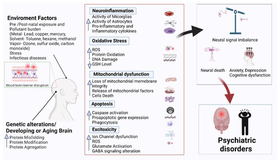 The blood–brain barrier (BBB) is the primary metabolic interface between the peripheral blood supply and neural tissues or their fluid spaces. The key function of the BBB is to maintain central nervous system homeostasis and prevent undesirable harmful particles and chemicals from entering the brain [11]. The BBB protects the central nervous system from circulating pathogens, toxins, and xenobiotics, as well as restricts the migration of leukocytes and monocytes [12]. Several transporters and metabolites, such as P-glycoprotein and cytochrome P450 enzymes, located at the BBB, also protect the CNS [13]. These features greatly limit the transcellular and paracellular movement of molecules and cells across the cerebral microvasculature [11]. A highly specialized interconnected network of junctional complexes between adjacent endothelial cells along with high transendothelial electrical resistance (TEER) and relatively low pinocytotic activity confer the unique characteristics and functions of the BBB [14]. The loss of BBB vascular integrity increases the penetration of undesirable solutes, fluids, cells, pathogens, and toxins from peripheral circulation to the central nervous system. As a consequence, cerebral edema, cerebral hyperexcitability, and neuroinflammation occur and contribute to the clinical complications of many diseases [11]. BBB breakdown occurs in many neurological and neuropsychiatric disorders. The major routes for molecular transportation through the BBB include the transcellular and paracellular routes [13]. The structural disruption of the paracellular route is an important mechanism in the pathological state of BBB interruption. Therefore, disruptions in the assembly of junctional complexes and central endothelial cells decrease the integrity of the BBB and expose the CNS to systemic circulation. Pathological stimuli induce dysregulation of the structure of junctional complexes (both tight junctions and adherence junctions) and ultimately damage their specialized gating function [15,16]. Therefore, BBB integrity plays a pivotal role in the pathophysiological alteration of neuropsychiatric disorders.