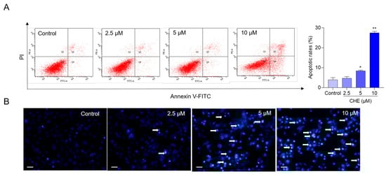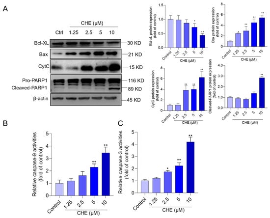 3.5. CHE Treatment Activates Mitochondrial Apoptotic Pathway