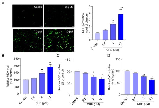 3.1. CHE Treatment Induces the Loss of Cell Viabilities in HepG2 Cells