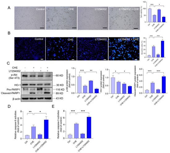 3.8. Inhibition of Akt Pathway Promotes CHE-Induced Cytotoxicity and Apoptosis