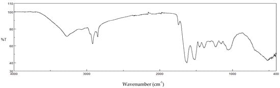 Moreover, the bands of the amide groups should be related to the presence of chitin and proteins in crickets. In particular, an N−H stretch band around 3300 cm−1, amide I band (mainly due to the C=O stretch) around 1630 cm−1, amide II band (N−H bend) around 1530 cm−1, and amide III band around 1235 cm−1 are present. In addition to these amide bands, a broad O−H stretch band appears [].