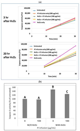 3.3. Pi Infusion Inhibits H2O2-Induced Caspase-3 Activity